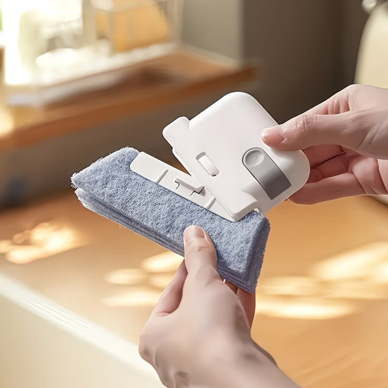 Elle comprend une tête brosse et un tampon en microfibre destinés à l’entretien des surfaces.